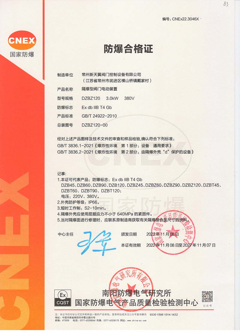 防爆Z10B Z10FB國家強制性產品認證CT4證書109.2